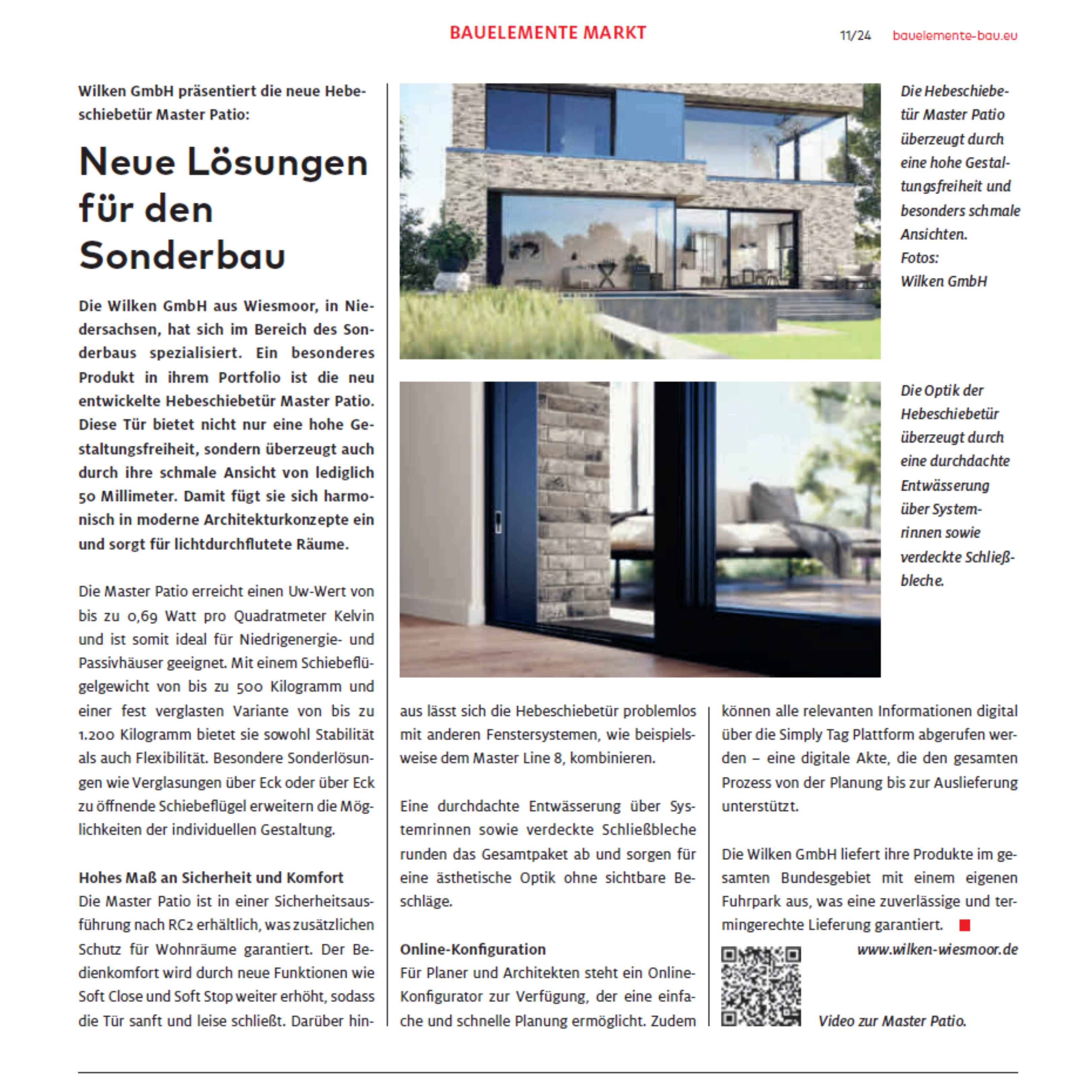 Kürzlich ist ein Artikel über unsere neue Hebe- / Schiebetür |Master Patio| in der Fachzeitschrift Bauelemente Bau erschienen.